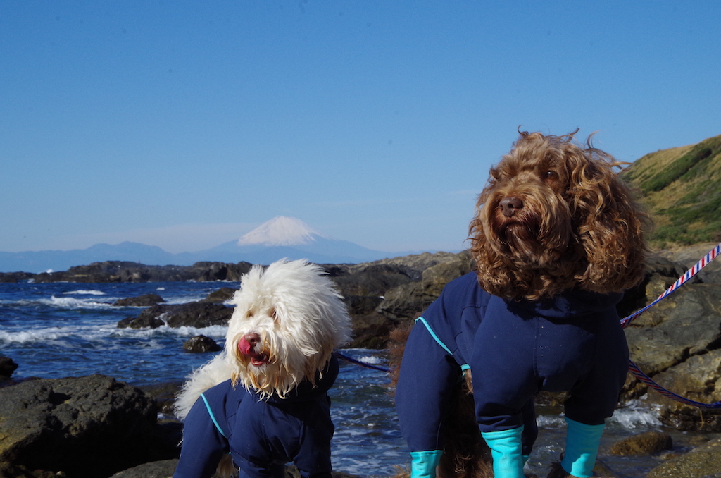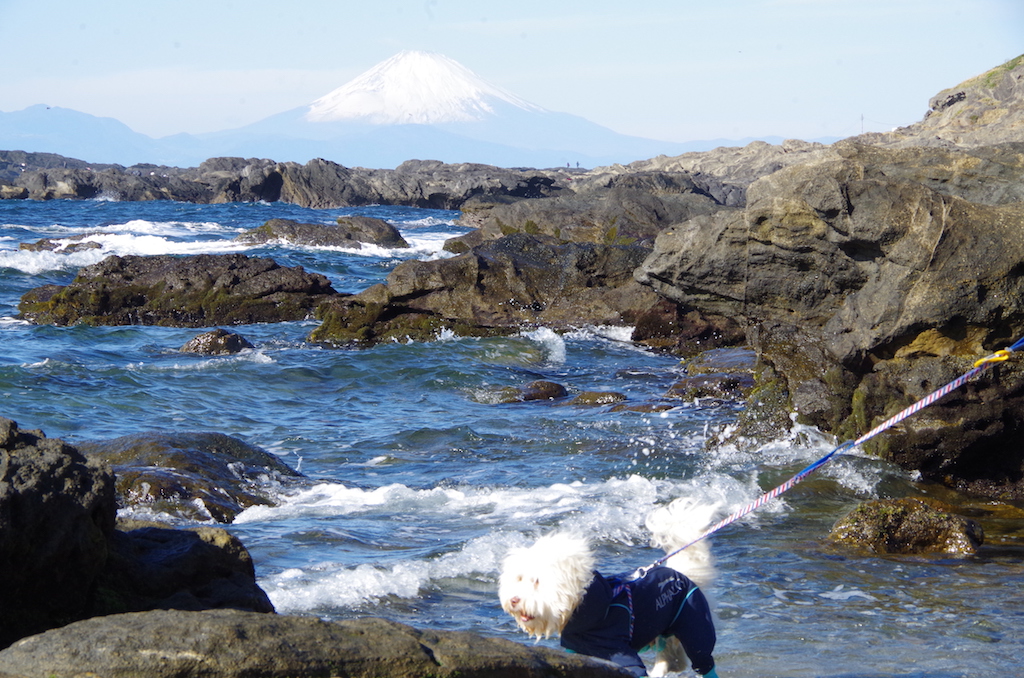2017年11月28日 / 0件のコメント 秋晴れの富士山 ちょっと行くだけで、富士山がこんなに身近になる島、日本。 岩と波だけで寒々しいけど、この日は秋晴れ。紫外線が気になるくらい。 もちろん海に入れる水温じゃないですが。 それでもサン・マロさんならやってくれますとも。 お顔のあたりまで濡れちゃってくれてます。 遊んで腹ごしらえした後は、ふたりを連れて初のお泊りのため、東京湾フェリーに乗って移動です。 濡れた顔もテラスの風で乾きましたよ。 それにしても、富士山ってあるだけで絵になるんだなぁ。